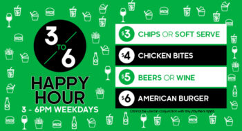 DEAL: Burger Project – $3 Chips, $3 Soft Serve, $4 Chicken Bites, $5 Beer or Wine, $6 American Burger (3-6pm Weekdays)