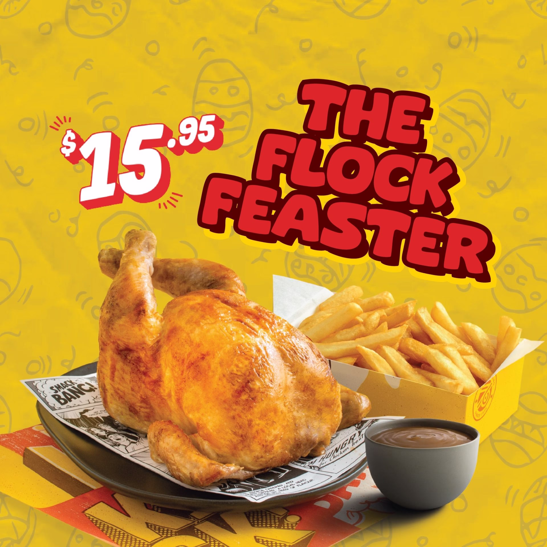 DEAL: Chicken Treat – $15.95 Flock Feast with Whole Chicken, XL Chips & Large Gravy (until 4 June 2024)