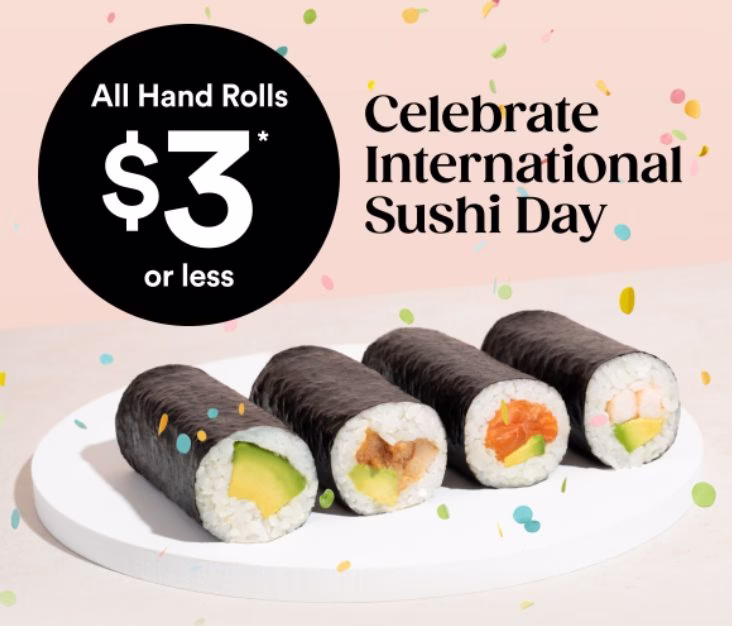 DEAL: Sushi Sushi – $3 Handrolls or Bubble Tea via DoorDash (until 24 June 2024)