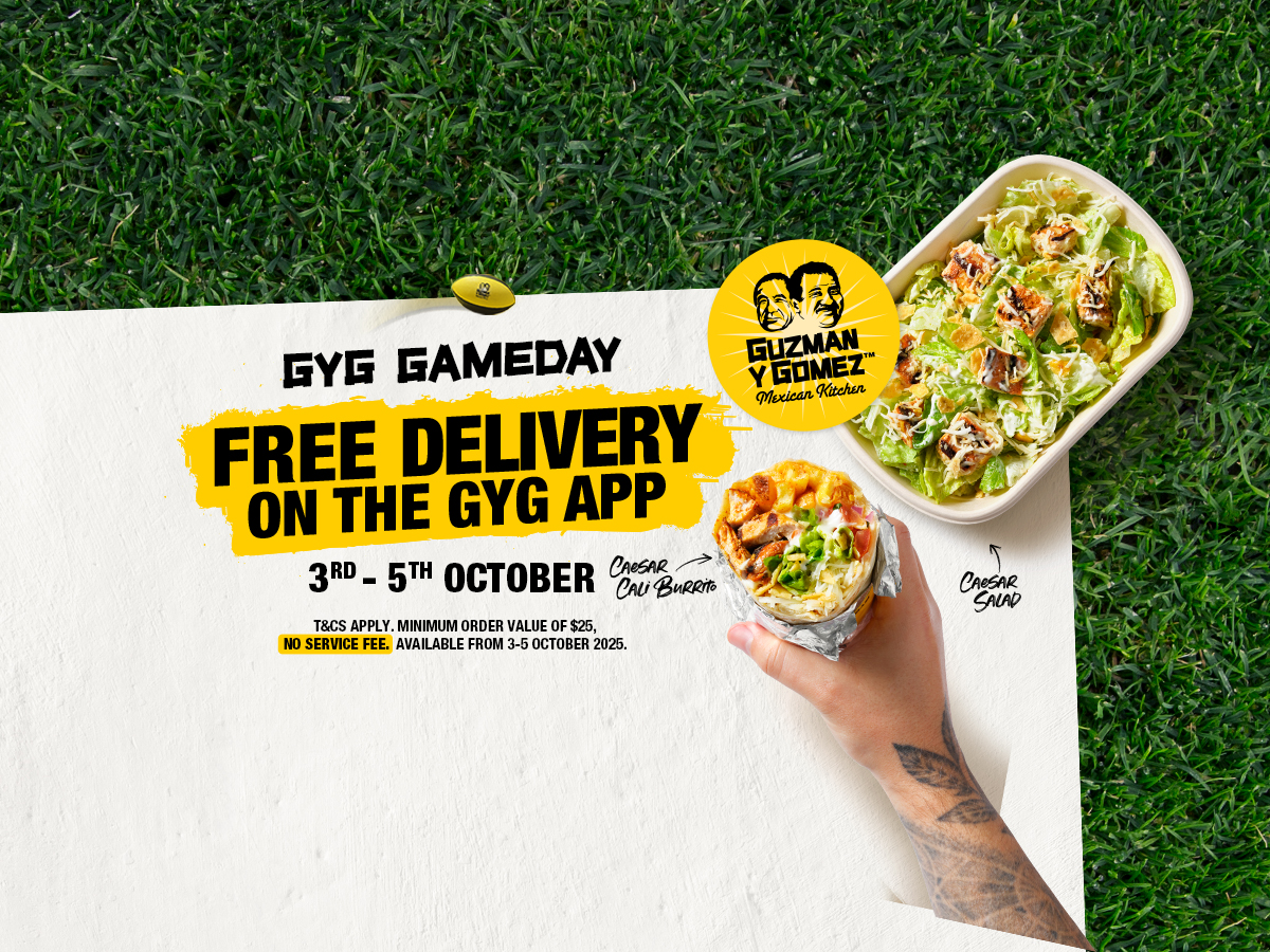 Game day just got a whole lot tastier. Guzman y Gomez (GYG) is celebrating the footy finals with a special promotion offering free delivery on all orders over $25, exclusively through the GYG App and web. The offer runs across the weekend from Friday, 3 October to Sunday, 5 October 2025, giving fans the perfect excuse to settle in for the finals with their favourite Mexican meals delivered straight to their door.
