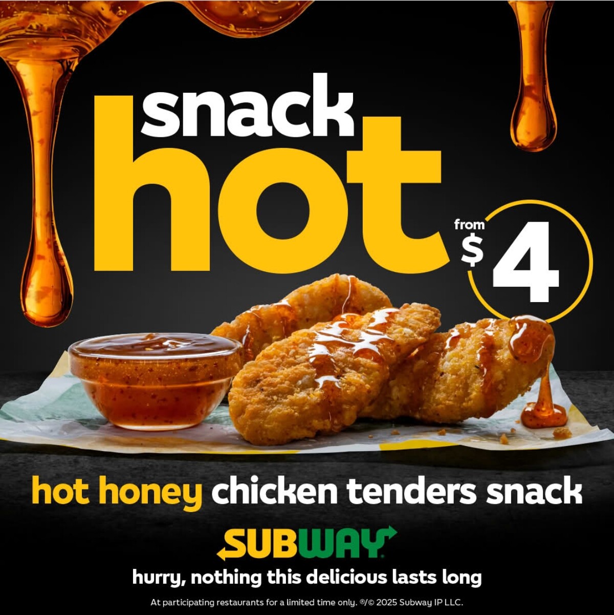 For those looking to spice up their next meal, the Hot Honey Chicken Tenders Snack brings a punchy, flavour-packed option to Subway’s menu — but only while supplies last.